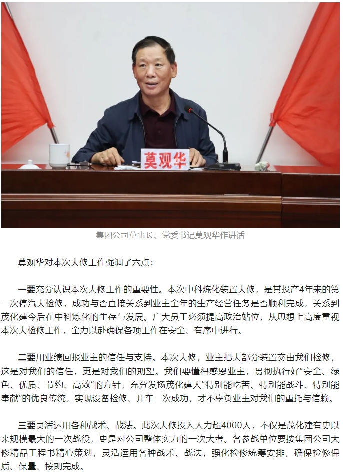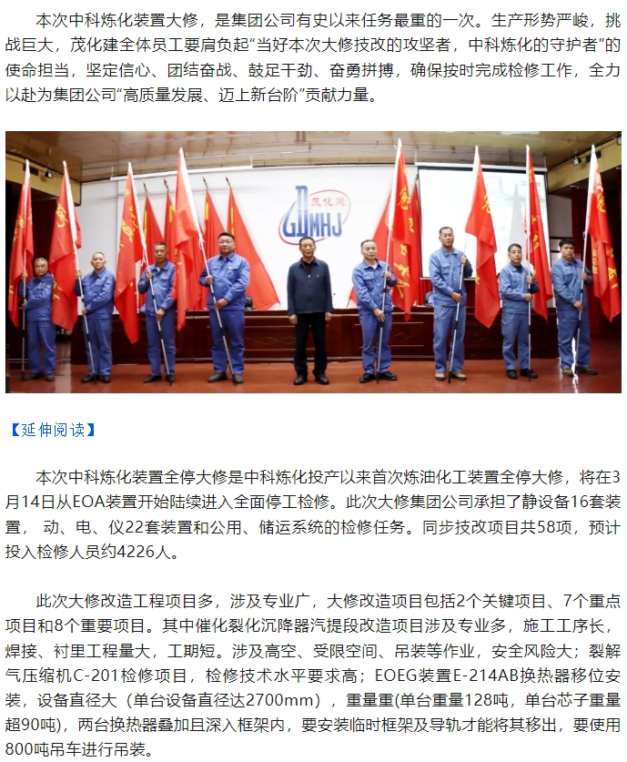 勠力同心擂響戰(zhàn)鼓 千軍萬馬出征大修——集團公司2024年中科煉化裝置大修動