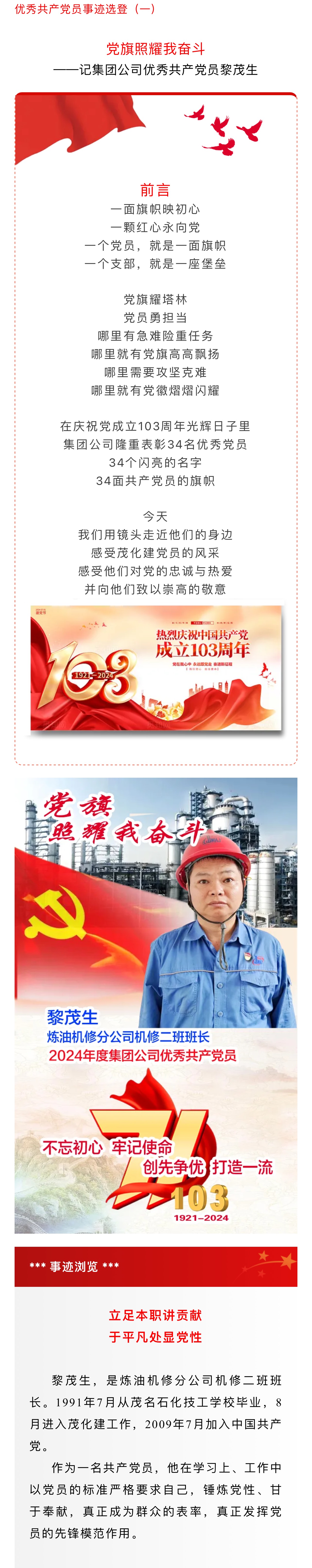黨旗照耀我奮斗——記集團公司優(yōu)秀共產(chǎn)黨員黎茂生