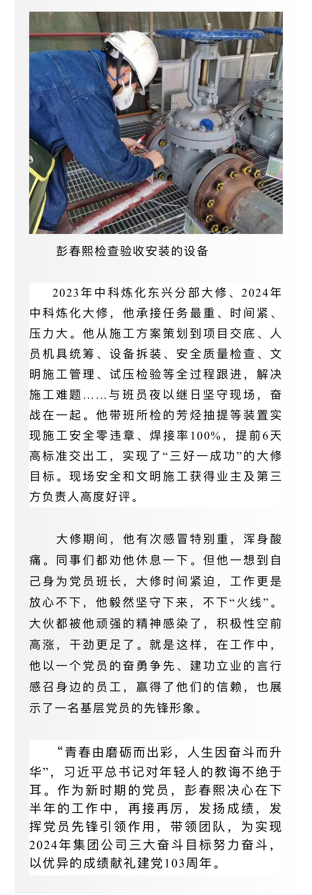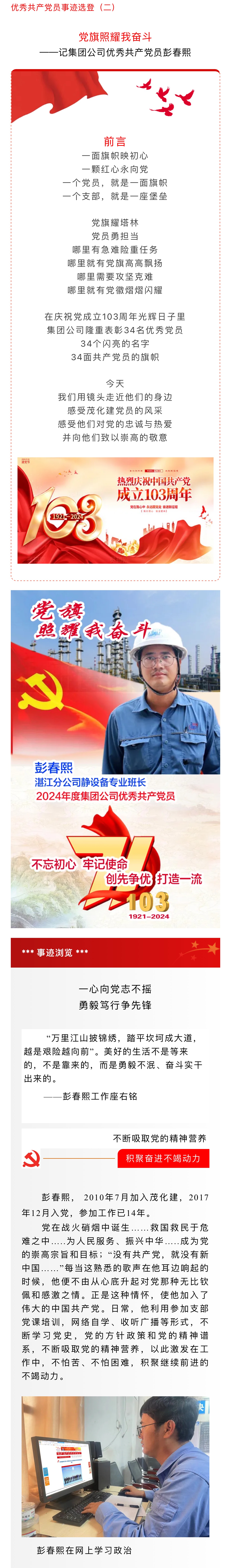 黨旗照耀我?jiàn)^斗——記集團(tuán)公司優(yōu)秀共產(chǎn)黨員彭春熙