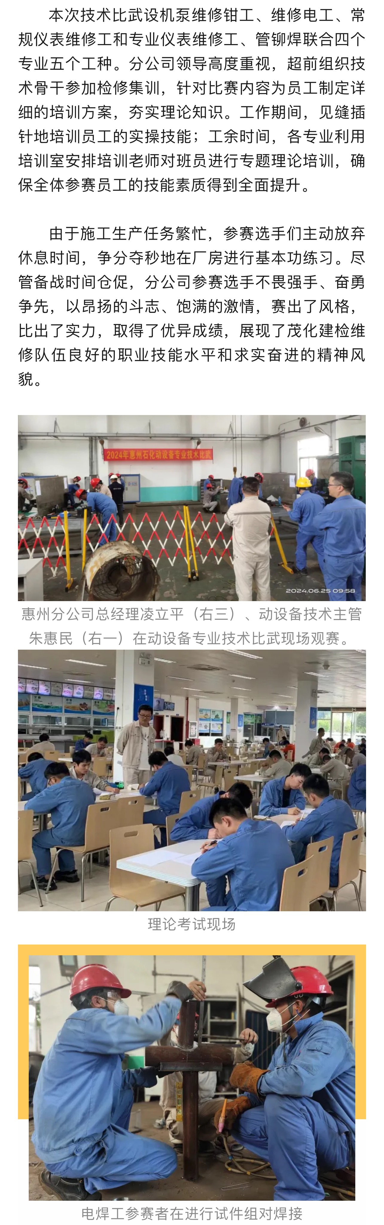 喜訊:惠州分公司在惠州石化維保單位技能維修工種技術(shù)比武中獲佳績
