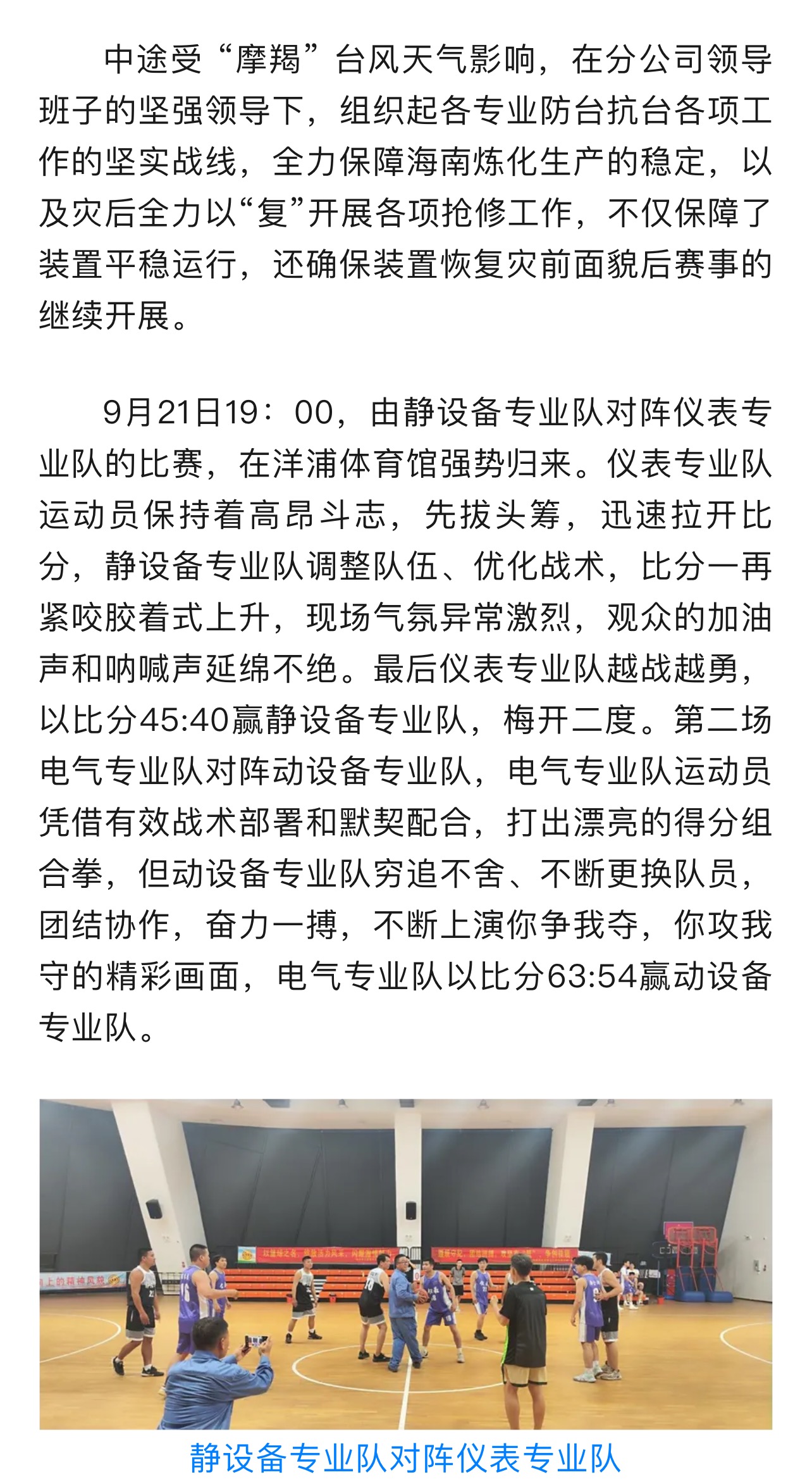 洋浦分公司員舉辦工籃球賽迎國慶