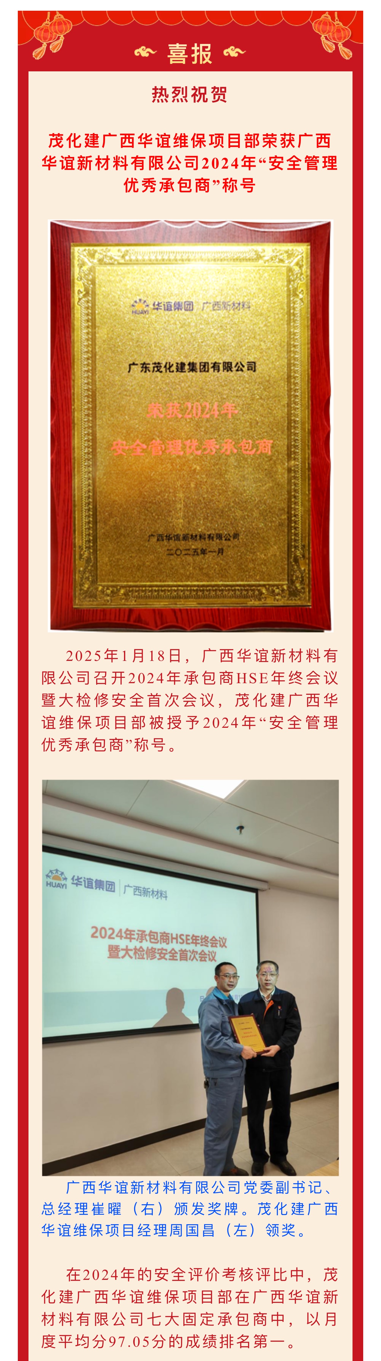 喜報(bào)|榮獲廣西華誼2024年“安全管理優(yōu)秀承包商”稱號