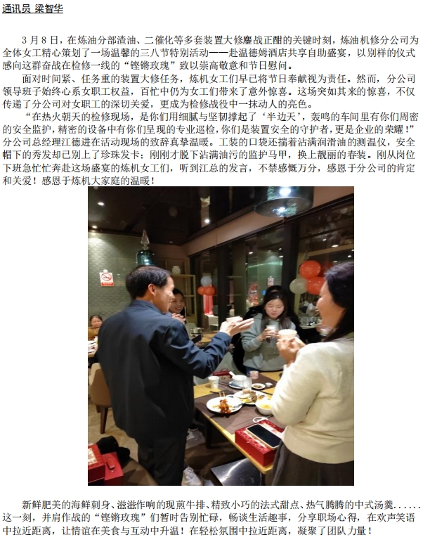 煉油機(jī)修分公司舉辦溫情三八節(jié)活動